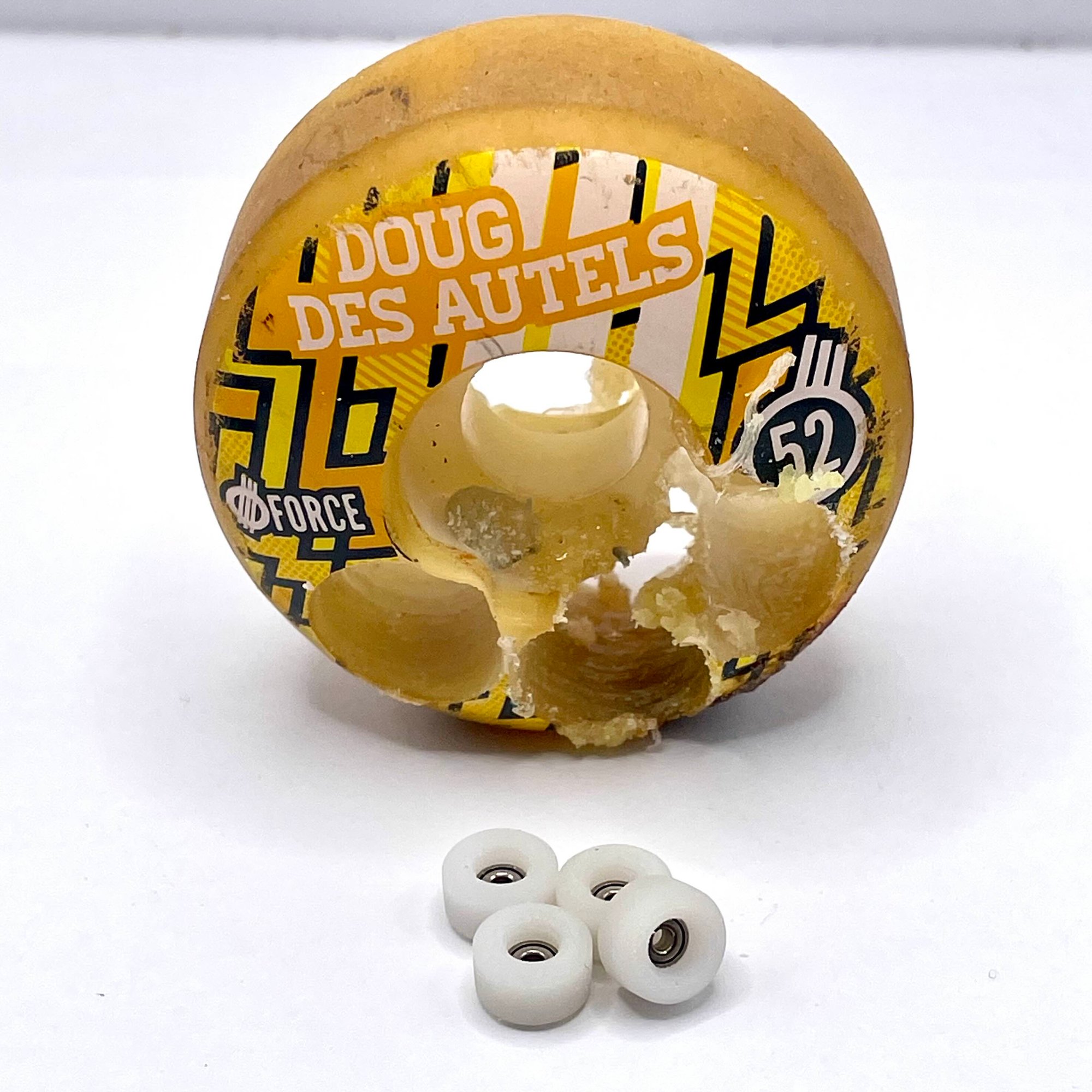 These are from the personal skate supply, i rode these Force wheels years ago. Raw Riderz recycled wheels are handmade by me in Colorado.