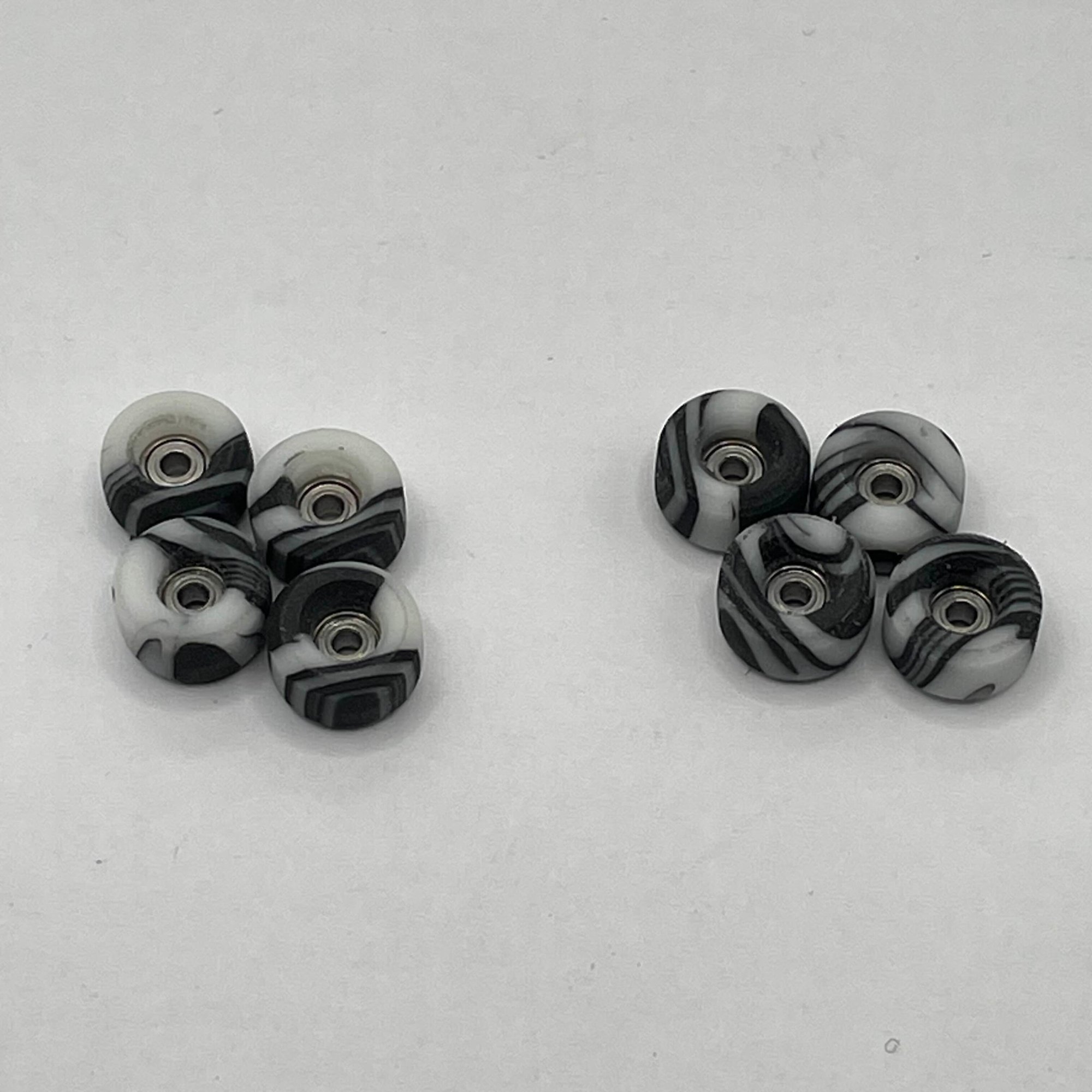 Recycled Slime Balls black and white swirl 97A wheels. Handmade by Rawz in Colorado/