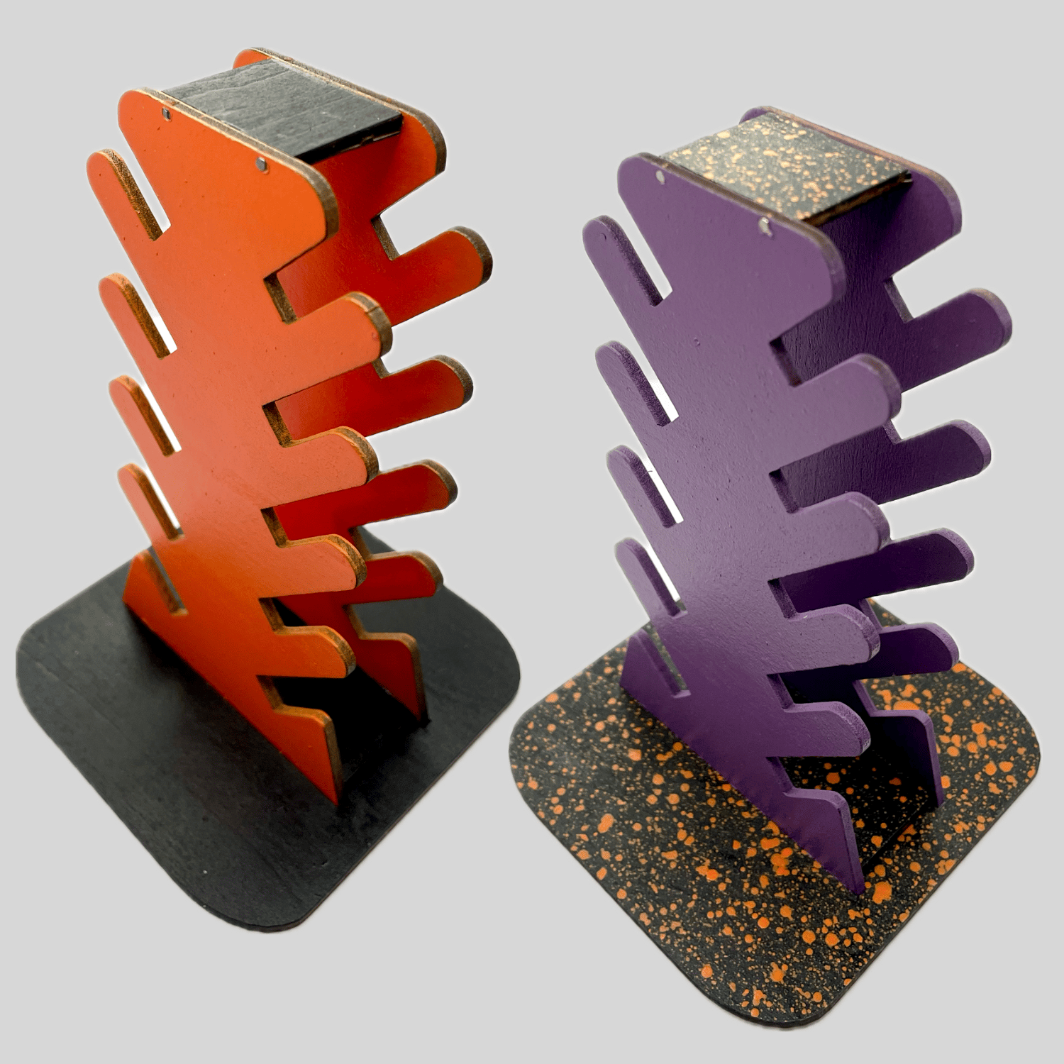 Painted laser cut fingerboard stand. Fits up to 10 boards.